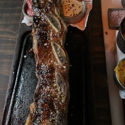 This is easily one of the best meals I have ever had. The interior was quaint and romantic (a little loud, crowded, and hot, but it wasn't anything unbearable). It had everything you'd expect of a steakhouse, but with an almost Italian touch to it? Our server was amazing. Incredibly helpful, quick, had great recommendations, and would oftentimes come around to our table with new sauces to try dipping our steak, fries, and bread in. To start, we had the assorted breads, each of which had its own distinct taste and every one of them was delicious, especially when dipped in the accompanying sauces! After that, we tried their empanadas, which were, again, outstanding (AND THE SAUCES!). I ordered a steak with a bleu cheese sauce over it and I'm not exaggerating when I say I've never had a better bleu cheese sauce in my life. I absolutely devoured it. Once again, the SAUCES that came with the steak were amazing! We had so many sauces at our table by the end that we were running out of room for everything! We had fries as a side and they were perfectly crispy and seasoned. Dessert was a huge surprise. We saw some servers walking around with it, so we had to get it... It was four scoops of ice cream with cones stuck on top. It looked like normal ice cream, but each and every flavor was absolutely amazing. We ate it all up. I cannot recommend this place more highly! Definitely make a reservation if you plan to go. There was a long line outside when we left!